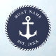 Boat Name Navy Blue & White Round Nautical Anchor Wall Decal