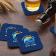 Boat Name Sun Palm Trees Welcome Aboard Blue Square Paper Coaster