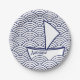 A paper plate with a boat on a Japanese wave pattern. Customize the paper plate with your name or your own text.