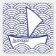 A square sticker with a boat on a Japanese wave pattern. Customize the sticker with your name or your own text.