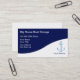 Boat storage business cards with boat anchor and blue and white background, along with great text layout you can personalize now. Best business cards designed as a busines card template for a boat storage facility, boat slips, or marina.