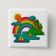Colorful landscape composition in cartoon style with boats sailing the river sun clouds and rainbow