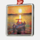 Make sure Santa knows who's nautical and nice. This framed Christmas ornament features a boat heading into the sunset, with painterly rainbow effects. If you're nautically inclined or have a boat lover on your list, this ornament can add a nice touch to holiday decor. This image is based on an original photo taken in Hilton Head, South Carolina but it could literally be the magic sunset hour on any lake or at any beach. The front has the boating image and the back has silver-colored metal. This image is also available on 2-sided ornaments.
