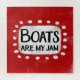"Boats Are My Jam" is a fun text design with a white accent shape surrounded by white whimsical textured dots.