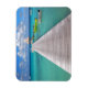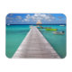 Rectangular photo magnet with multiple boats at a jetty in the clear turquoise lagoon of a tropical island in French Polynesia in the Pacific ocean.