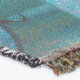 A quality printed throw has its advantages. This is a much finer weave throw than its loopier cousins, and though lighter, it is worth the investment for custom room accessorizing. The back is much prettier than the typical brown, and the fringe on the long sides very vivid, the selvage nicely done. Before photographing, I washed the throw in cold water, delicate, with a thicker woven throw the same size. On tumble dry low, this throw was dry in half the time as the other. This is a very practical quality if you use throws for furniture covers or to wrap up in frequently. The sleekness of the fabric makes it a great layer for accenting or protecting without the feeling of sitting on too much stuff. Perfect for napping or when you feel a light chill coming on. The color printing is beautiful and on this fabric, matched the design and color of my Photoshop image. This is an advantage for blending room fabrics and colors. The fringe on the short sides prints the colors from the design image and therefore varies from the side fringe. I streaked a white fractal line through the plaid pattern to give the illusion of weaving. This printed as crisp as an illusory thread, and put some white in the short side fringe, showing another advantage of print vs loomed- for artistic purposes, line lines, detail, and color integrity can be planned and preserved. My loomed throws have color limitations and more of a needlepoint texture. Print throws reproduce an exact image. The throw felt a little stiff straight out of the package, but this went away in the first delicate wash. Of course I searched the wash water for ink or bleeding and there was none.
