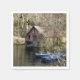 A photographic design of blue boats and an old boathouse by the lake. Wales UK.