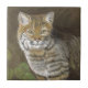 A pastel portrait of a shy and beautiful Bobcat is featured on this ceramic tile.