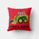 Bobcat excavator themed kids' throw cushion with customisable text.