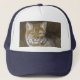 A pastel portrait of a shy and beautiful Bobcat is featured on this hat.