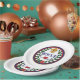 Dramatic party plate for bocce-themed functions. Celebrate your love of bocce at your next bocce-themed soiree. Dinner party, lunch, morning coffee, bocce club meetings. birthday party, victory party, or snacks at the tournament! Also available in 7" size for snacks or dessert.