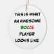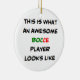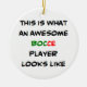 Lightweight, smooth, pure white ornament with nice sheen. Perfect size to be seen from across the room ... and to attract closer inspection! Price was great for ordering enough for the whole family! Clear, bold black design just as requested. Matches the order exactly. Just so nice!