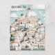 This travel postcard, in modern digital illustration style, showcases the Aegean architecture with a sample from Bodrum, the holiday city of Turkiye.