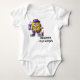 I love this onesie, it's adorable! The material is amazing so soft and the color is a perfect sky blue. When my daughter-in asked me to help with her Baby Shower, I was thrilled. It was co-ed & the theme was Cookie Monster. I had no idea that the whole world was after that big blue Monster. Thank goodness for Zazzle, I got most of the party supplies here. Then I found this onesie! They made my customization so easy. The colors are awesome. I wrote the word "Loved" across the bottom of the Cookie Monster in red letters when I was putting it together. I saw the preview & liked it. But to see it in person, OH, it was fantastic, they do exceptional work! I am so glad that I found this onesie/bodysuit. The production time and shipping were exactly what I was told, which made it easy to plan the party. Packaging was nice as well. If you are looking at this product, look no further, I highly recommend it! I'm certain that I'll be back to "design" whatever my new Grandson "needs.". The printing on the onesie/bodysuit is crisp, and clean. With perfect colors that blend well with the blue background of the basic material. We are so happy with how it came out.
