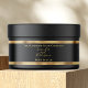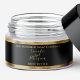 A label for cosmetics and/or soap products with a black background and a faux gold foil border. Customize it with your business and product information. This label measures 1 inch by 7.25 inches (25 mm by 184 mm) and is suitable for jars with a diameter of 2.31 inches (59 mm) or more.