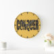 Great price for a very nice product. Arrived a day early - unheard of these days. The outside gold area has a little more orange tone to it than shown in the picture. Great packing so product can't get damaged. I used the same packing to forward the clock to my brother and sister-on-law for the 50th wedding anniversary. Printing was just as expected - lovely!