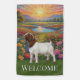 Boer Goat Welcome Flag garden flag. Beautiful goat in wildflower meadow and mountains. Lots of beautiful art in my stores. Add this art to other products, add your own text, or change text.