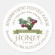 Add in your business name, address, net wt and honey description. Elegant white label with gold text and red and green cranberry illustration.
