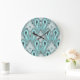 Bohemian Aqua Turquoise Ikat Tribal Art Pattern Large Clock