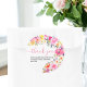 Bohemian bold floral watercolor bridal shower thank you sticker featuring hand painted bright blooms pink, orange, yellow flowers and greenery eucalyptus leaves and indigo foliage with a modern script brush font on hot neon pink. Perfect bridal invite for Spring and summer, for garden party theme and outdoors.