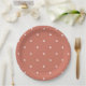 These adorable baby shower paper plate feature trendy boho style. A terracotta and neutral cute painted rainbow on a simple white background with a polka dot, terracotta border.