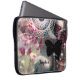 Retro style personalized laptop or notebook computer case has a pattern with black butterflies, bubbles, stenciled rose and gothic filligree on a gray micro patterned background. Fill in your name in the Personalize it section above or clear the field to order without text.. © Little Wing Photography & Design