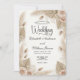 Embrace an earthy desert aesthetic with dusty pink botanicals, dried palm fans, and elegant calligraphy for a warm, romantic, and modern celebration.The visual composition is anchored by a soft, printed watercolor background in warm cream and tan hues, providing a high-contrast canvas for the classic serif and clean sans-serif typography. Framing the central text are delicately illustrated dried palm fans and subtle bunny tail floral motifs in varying shades of dusty pink and earthy beige. An elegant modern calligraphy script, detailed with a decorative heart swash, serves as the primary focal point in the typographic hierarchy.This is a flat printed image with a faux watercolor and printed dried floral effect, not actual raised material.