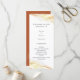 Bohemian Desert Watercolor Wash Frame, wedding program. Template text lists for ceremony order of events, wedding party and thank you note. Backing color shown in dark coordinating rust orange, can be customized.
