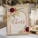 Celebrate in style with this Cheers Table Sign from the Fall in Love Bridal Shower Collection by Porch and Gable Design. Featuring a hand painted watercolor bouquet of deep burgundy chrysanthemums, soft blush pink roses, golden autumn leaves, airy dried pampas grass, sage eucalyptus greenery, and rustic Western inspired pheasant feathers, framed by a terracotta rust orange arch on a neutral earthy clay beige background, this sign exudes modern boho chic charm. The text reads “Cheers” with fully customizable space for a personal message, names, or date. Perfectly placed by the bar or champagne toast station, it coordinates beautifully with matching invitations, signage, drinkware, favor tags, and other décor in the Fall in Love Event Suite for a cohesive, elegant autumn bridal shower or celebration.