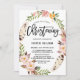 Bohemian Feathers & Floral Wreath Pink Christening Invitation