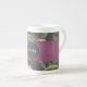 Beautiful bone china mug with a dark floral background and plum band. Personalized with a name. Would make a perfect gift or accent for your home. For more home accessories see the Knots & Kisses Shop.