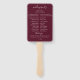 Beautiful bohemian watercolor flowers in shades of purple, burgundy, pink, peach, coral and green, back features solid burgundy bordeaux background, wedding program fans. Personalize text, customize font style, color and size.