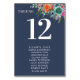 Bohemian Garden Blue Boho Wildflower Wedding Table Number