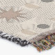 A quality printed throw has its advantages. This is a much finer weave throw than its loopier cousins, and though lighter, it is worth the investment for custom room accessorizing. The back is much prettier than the typical brown, and the fringe on the long sides very vivid, the selvage nicely done. Before photographing, I washed the throw in cold water, delicate, with a thicker woven throw the same size. On tumble dry low, this throw was dry in half the time as the other. This is a very practical quality if you use throws for furniture covers or to wrap up in frequently. The sleekness of the fabric makes it a great layer for accenting or protecting without the feeling of sitting on too much stuff. Perfect for napping or when you feel a light chill coming on. The color printing is beautiful and on this fabric, matched the design and color of my Photoshop image. This is an advantage for blending room fabrics and colors. The fringe on the short sides prints the colors from the design image and therefore varies from the side fringe. I streaked a white fractal line through the plaid pattern to give the illusion of weaving. This printed as crisp as an illusory thread, and put some white in the short side fringe, showing another advantage of print vs loomed- for artistic purposes, line lines, detail, and color integrity can be planned and preserved. My loomed throws have color limitations and more of a needlepoint texture. Print throws reproduce an exact image. The throw felt a little stiff straight out of the package, but this went away in the first delicate wash. Of course I searched the wash water for ink or bleeding and there was none.