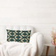 Bohemian Gold Forest Green Ikat Pattern Lumbar Pillow
