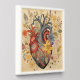 Infuse your space with artistic charm and bohemian vibes with this 8"x8" Peel and Stick Wall Tile, showcasing a stunning depiction of a human heart entwined with blooming flowers and verdant arteries. The heart, in a soft grayish-white tone, is set against a sandy brown bohemian background adorned with intricate floral patterns and lush green foliage.