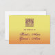 A bohemian inspired wedding rsvp featuring a jewel toned orange and yellow background with dark purple text and square design at top with. Personalize with the bride and groom's names on front and with the date on back.