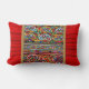 Bohemian style lumbar cushion in red with multi coloured design
