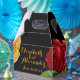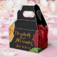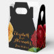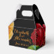 A modern bohemian wedding design on a black background with red and yellow roses creates a custom gable favor box with a template area for your names and date. By changing the text you can use the favor box for other occasions.