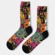 A vibrant bohemian patchwork design with intricate mandalas, paisley motifs and ornamental floral elements. This pattern blends bold colors like orange, teal, magenta and black, creating an exotic and decorative Socks. Ideal for those who love boho, ethnic and folk art aesthetics.