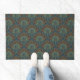 This door mat features a scallops fan pattern in earthy olive green, rust on navy blue for a bohemian look.