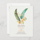 Bohemian Teal Feathers Rustic Save the Date Announcement Postcard