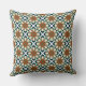 Bohemian Tile-Inspired Fabric with Rust, Teal, and Throw Pillow
