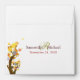 Cute, colorful trees with decorative swirls & spirals on tree branches + olive green colored liner designed on custom Wedding Invitation Envelopes. All the sample text can be fully customized with your own wording. Feel free to change the fonts, sizes & colors of the text as well. ((You can find the matching wedding essentials & favors in this store, Bridal Heaven. Contact ujean4791@gmail.com for custom work and/or coordinating wedding stationery.))