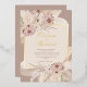 This bohemian floral frame wedding invitation features an enchanting design in earthy tones, creating a rustic and romantic atmosphere. The intricate floral arrangement forms a delicate frame, setting the perfect backdrop for the celebration. The bride and groom's names are elegantly written in shimmering gold foil, adding a touch of glamour to this charming and personalized invitation. This invitation beautifully captures the essence of a bohemian-inspired wedding with a blend of nature-inspired elements and a touch of luxury.