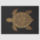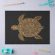 Tissue/craft/decoupage paper with bohemian designed turtle in gold and black, against a black background.