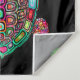 Wall tapestry with image of colorful bohemian turtle against a black background.