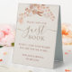This design is a beautiful representation of the boho theme, featuring elegant calligraphy lettering script and watercolor flowers. The combination of these elements creates a whimsical and romantic feel, perfect for a bohemian wedding. The Tent Sign serves as a lovely addition to your guest book table, encouraging guests to leave their well wishes and messages for the happy couple. The design is both simple and elegant, making it a timeless keepsake of your special day.