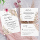 “Invite your guests to your special day with this beautifully designed wedding invitation card. The card features a stunning boho feather and watercolor bouquet with dried leaves and tropical flowers, adding a touch of natural elegance to your wedding. The intricate details and vibrant colors of the design are sure to impress your guests and set the tone for a memorable celebration.”
