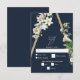 A beautiful bohemian style rustic wood pyramid with white watercolor florals cascading on the side and a blue background. A unique design that uses vintage white watercolor botanicals on a bohemian triangle structure. A charming white floral design with rustic and geometric features and elegant script typography. An elegant wedding RSVP response card design with modern elements. Matching wedding invitations and other stationery items are also available.